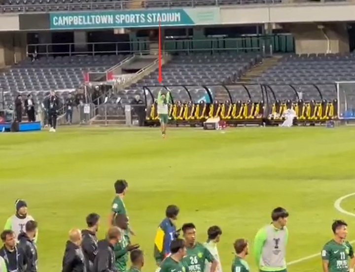 比赛结束后,按照惯例,国安球员来到远征军看台前谢场。然而,0-3的比分让远赴澳洲的国安球迷难以保持冷静。